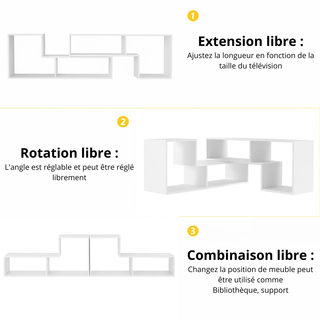 - façonnable : taille réglable et plusieurs combinaisons adaptées (table de télévision, table de couloir, table de canapé, Bibliothéque centre de divertissement, support multimédia, console de rangement, etc.)