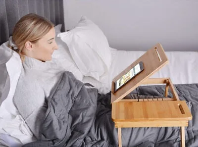 Design moderne : Plateau en bois chic pour votre ordinateur portable, pour vous détendre et lire un bon livre ou pour déjeuner en pain